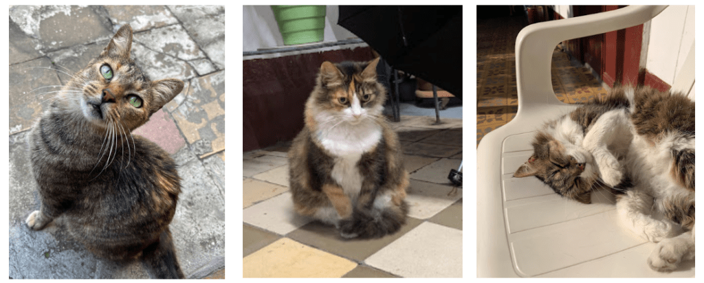A la casa de mi abuela hace más o menos 10 años llegaron 3 gaticas, mis tíos las nombraron Tere (Teresa María de los Ángeles), Ciri (Cirila del Carmen) y Chuchena (Azucena de Jesús), fue por ellas que aprendí a querer los gatos, no vivo con ellas pero las siento como mis mascotas por ese amor tan lindo que transmiten.