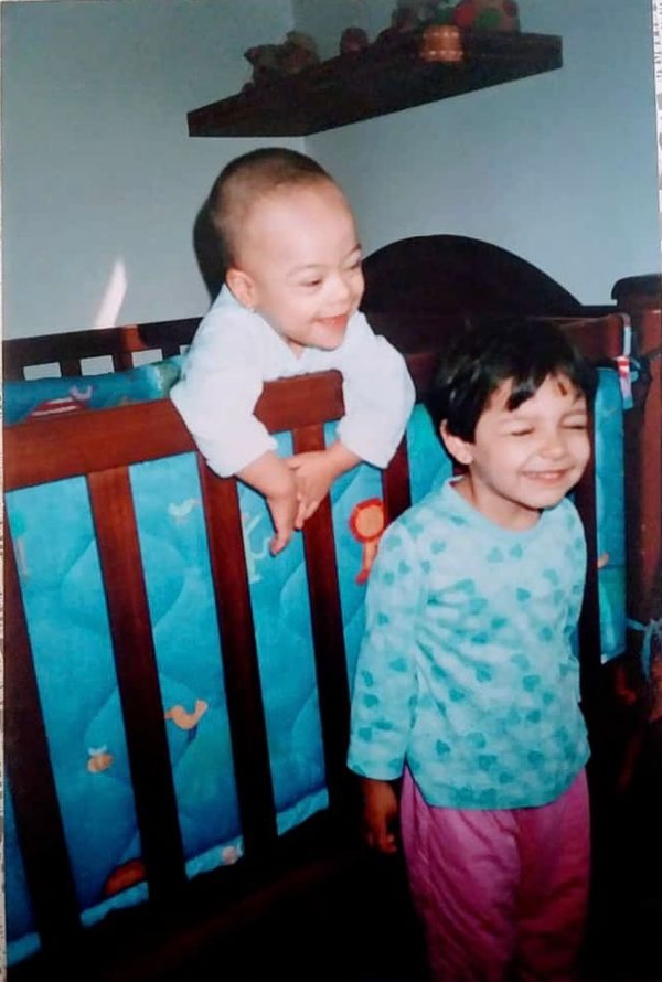 Gaby y yo nos llevamos solo 2 años, yo soy la mayor. Cuando era pequeña nuestros papás me dijeron que Gaby tenía un cromosoma de más y que eso la hacía diferente. Yo en medio de mi inocencia les pregunté porqué no la operaban para quitarle ese cromosoma extra, ellos muy pacientemente me explicaron que no era un solo cromosoma extra en todo su cuerpo sino uno extra en todas (o la mayoría) de sus células, y que esa condición se llama Síndrome de Down.