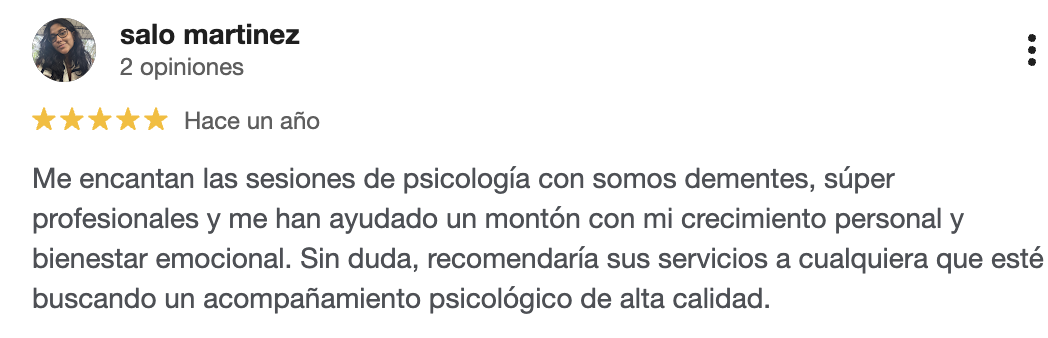 📩 Te agradecerÃamos si pudieras compartir tu opinión o tu experiencia con Somos DeMentes en nuestra página de google: https://g.page/r/CcKMLjGDvQoMEAE/review